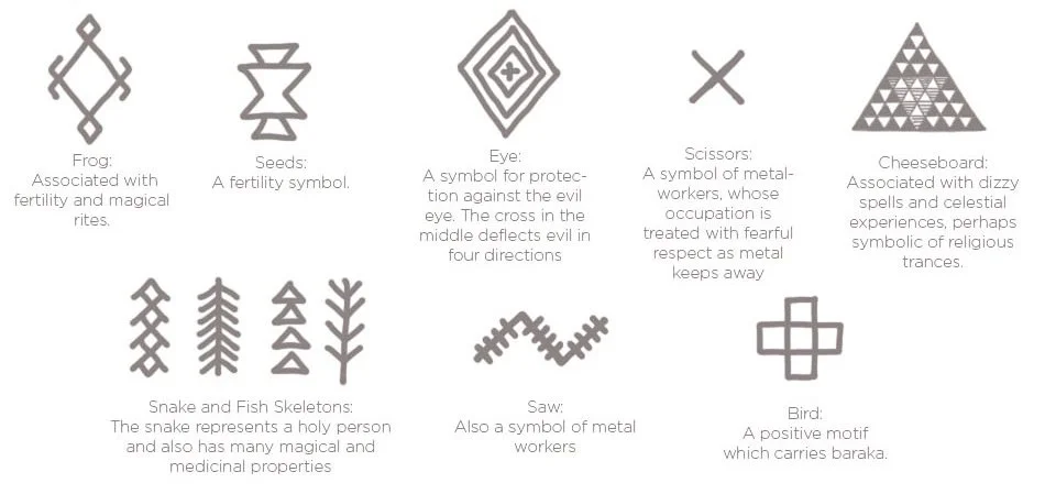 Moroccan carpets carry messages rooted in Berber rural life. Motifs and symbols encrypt stories of fertility, sexuality, survival, protection, and the natural world.
